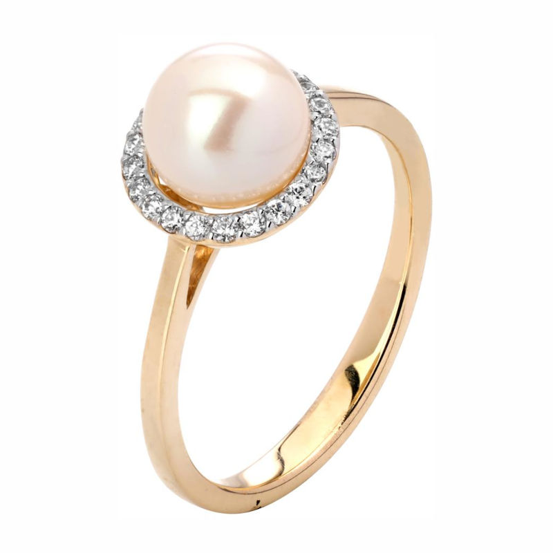 Кольцо из желтого золота 585 пробы с жемчугом и фианитами 01К3312642-1