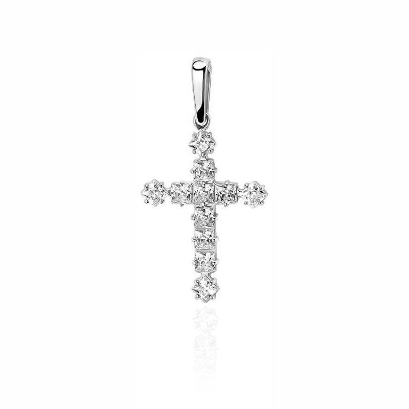 Крест из белого золота 585 пробы с фианитами 01Р120682