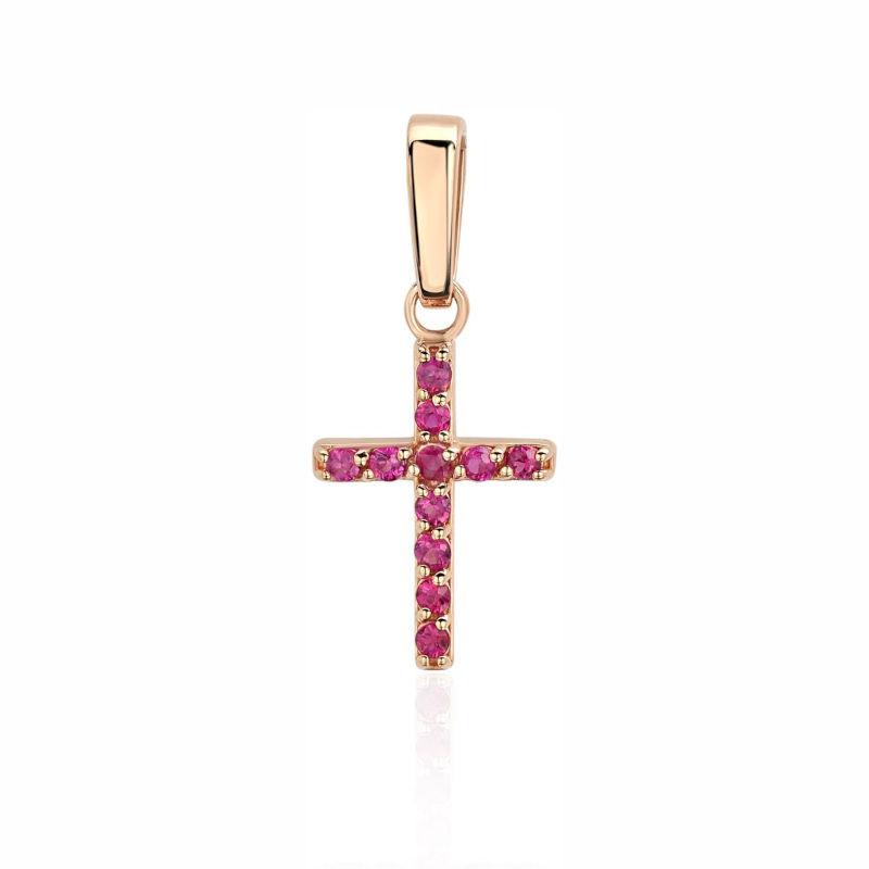 Крест из красного золота 585 пробы с рубинами 01Р511126-2