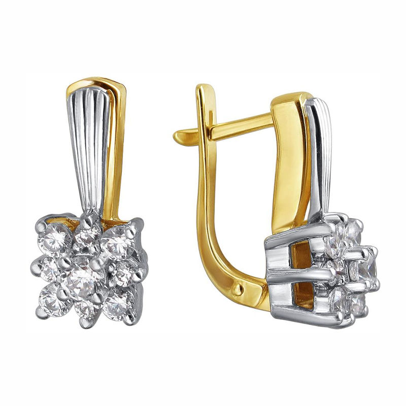 Серьги из комбинированного золота 585 пробы с фианитами 01С1611728Ж