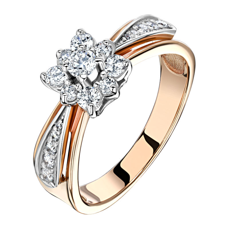 Кольцо из двух цветов золота 585 пробы с декоративным дизайном. Идеальное сочетание красного и белого золота. Сегодня сочетание золота и фианита уже считается классикой. Роскошный блеск фианита привлекает взгляды, а оригинальный дизайн вносит в образ нотку элегантности. Самые смелые решения дизайнеров воплощаются в современных украшениях.