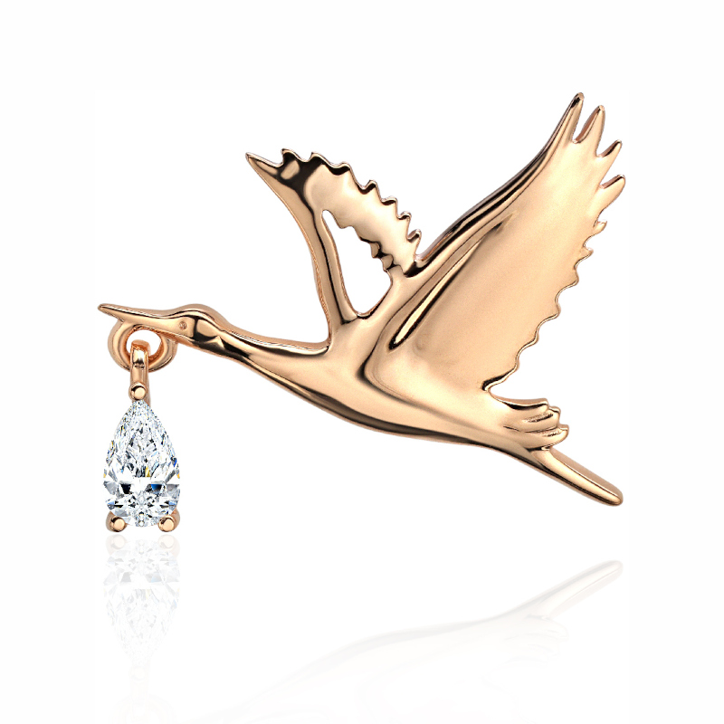 Булавка брошь Аист из красного золота 585 пробы с фианитом и латунью 01В110120