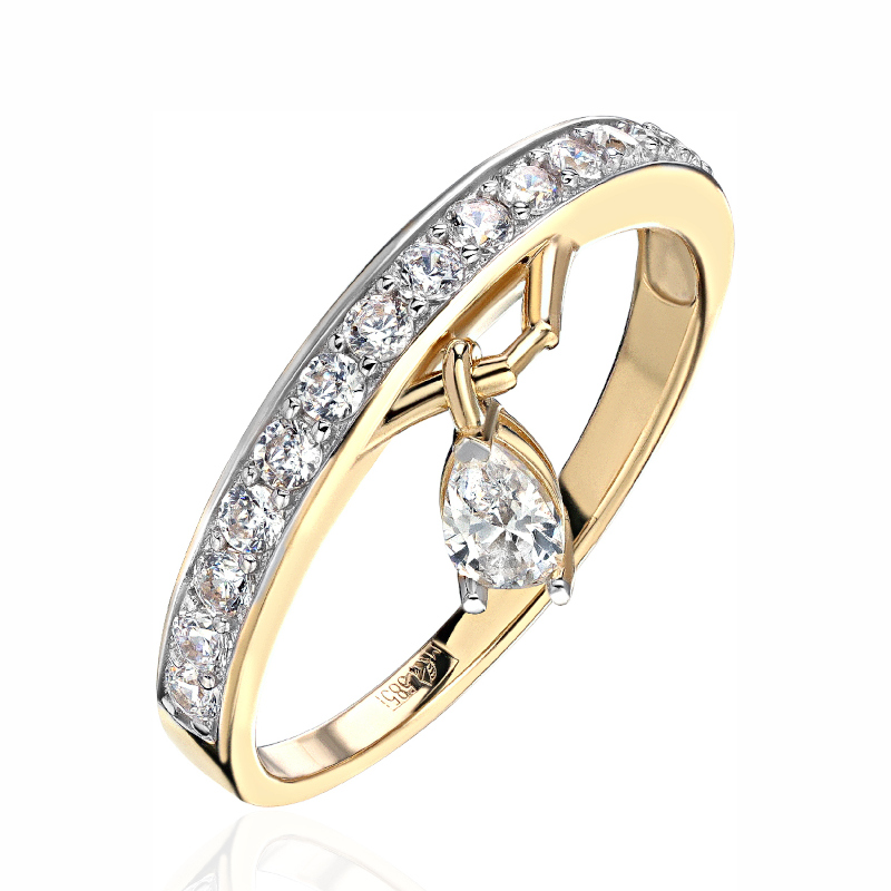 Кольцо из желтого золота 585 пробы c фианитами 01К1314071Р