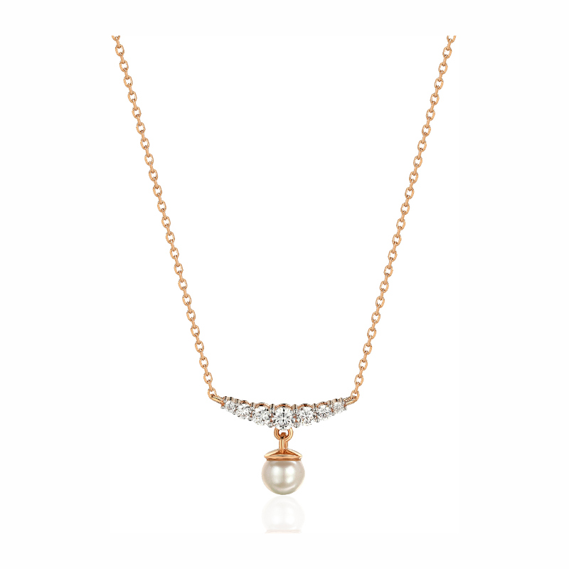 Колье из красного золота 585 пробы с фианитами и жемчугом 01Л312255Р-1