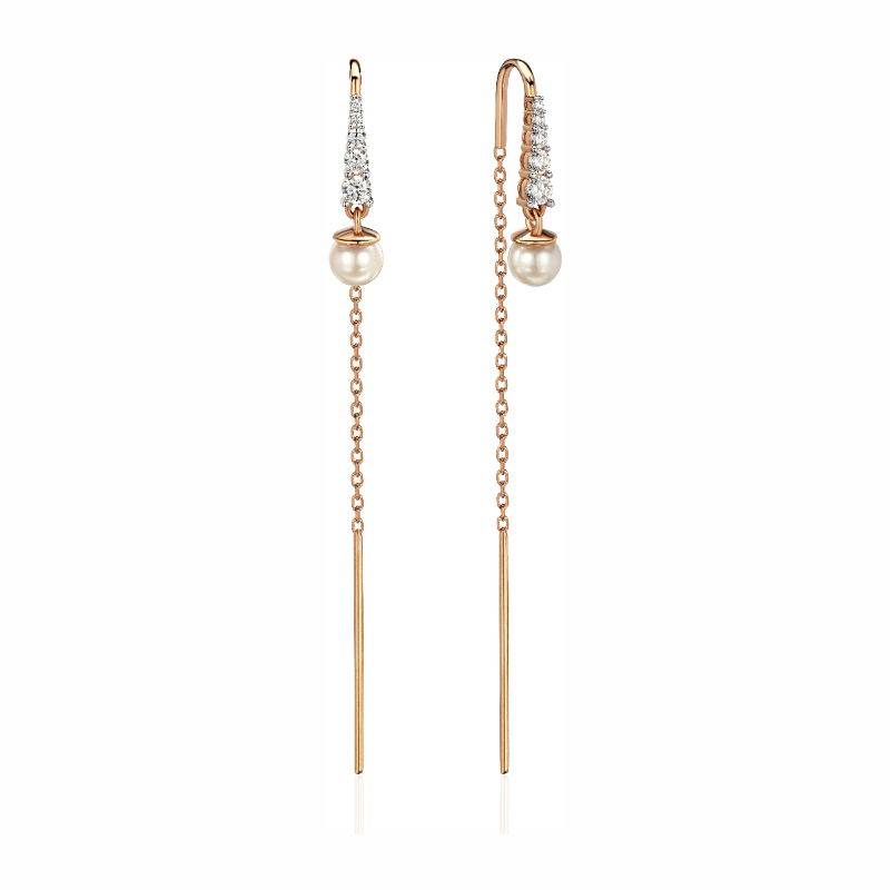 Серьги из красного золота 585 пробы с фианитами и жемчугом 01С3114286Р-1