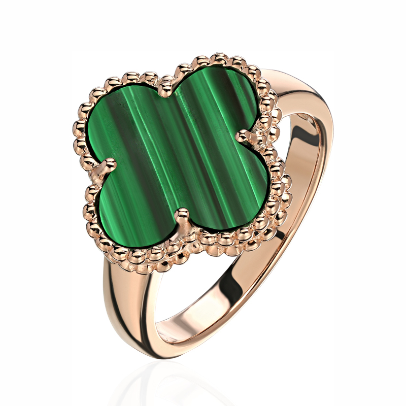 Представляем вашему вниманию кольцо в форме клевера с роскошной вставкой из малахита – изысканный элемент женского стиля из коллекции Stylish Look от Ювелирного дома Эстет. Каждое кольцо, изготовленное нашими мастерами, символизирует удачу и гармонию, а малахит, известный своими целебными свойствами, придает особую значимость этому украшению.