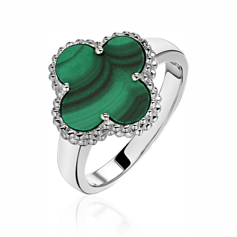 Представляем вашему вниманию кольцо в форме клевера с роскошной вставкой из малахита – изысканный элемент женского стиля из коллекции Stylish Look от Ювелирного дома Эстет. Каждое кольцо, изготовленное нашими мастерами, символизирует удачу и гармонию, а малахит, известный своими целебными свойствами, придает особую значимость этому украшению.