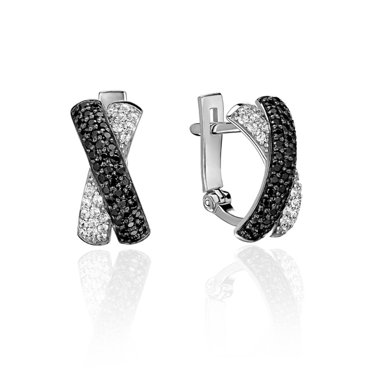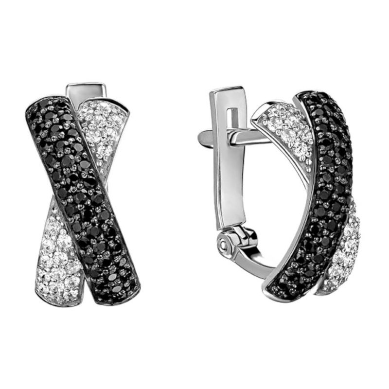 Серьги из белого золота 585 пробы с цветными вставками. Сегодня сочетание золота и фианита уже считается классикой. Роскошный блеск фианита привлекает взгляды, а оригинальный дизайн вносит в образ нотку элегантности. Самые смелые решения дизайнеров воплощаются в современных украшениях. Сочетание черного и белого сегодня является классикой. Украшение прекрасно подойдет для строгого офисного дресс-кода. И в тоже время, экспериментируя с образами, серьги будут уместны на каждый день.