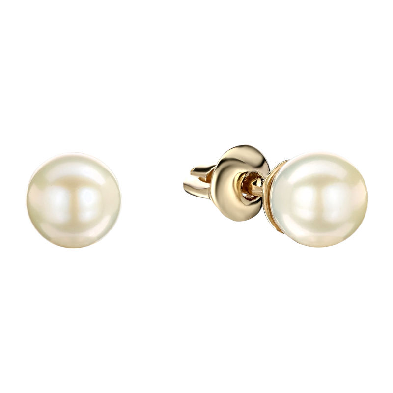 Серьги из желтого золота 585 пробы с жемчугом 01С332417-1