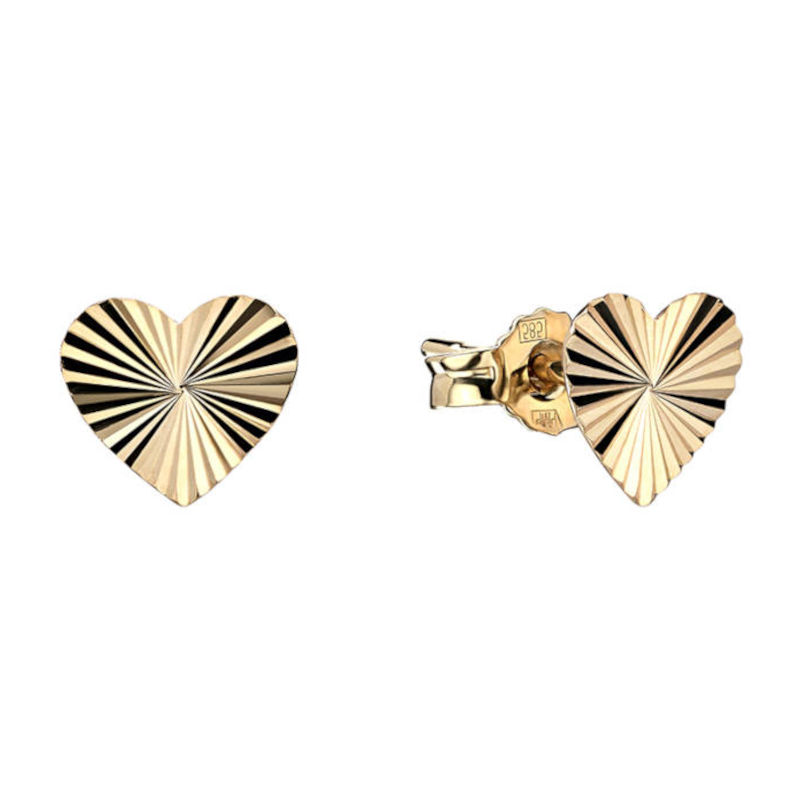 Серьги-пусеты из желтого золота 585 пробы — легкая, лаконичная и очень эффектная модель в форме сердца. Алмазная грань отражает свет под разными углами — сердце как будто излучает свет. Штифтовый замок удобно фиксирует серьги в ушах. Эта базовая модель станет вашей любимой в коллекции украшений.