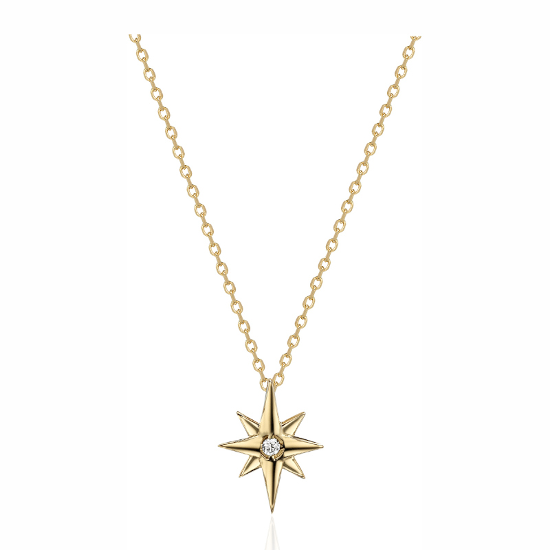 Колье "Звезда" из желтого золота 585 пробы с фианитом 01Л132110