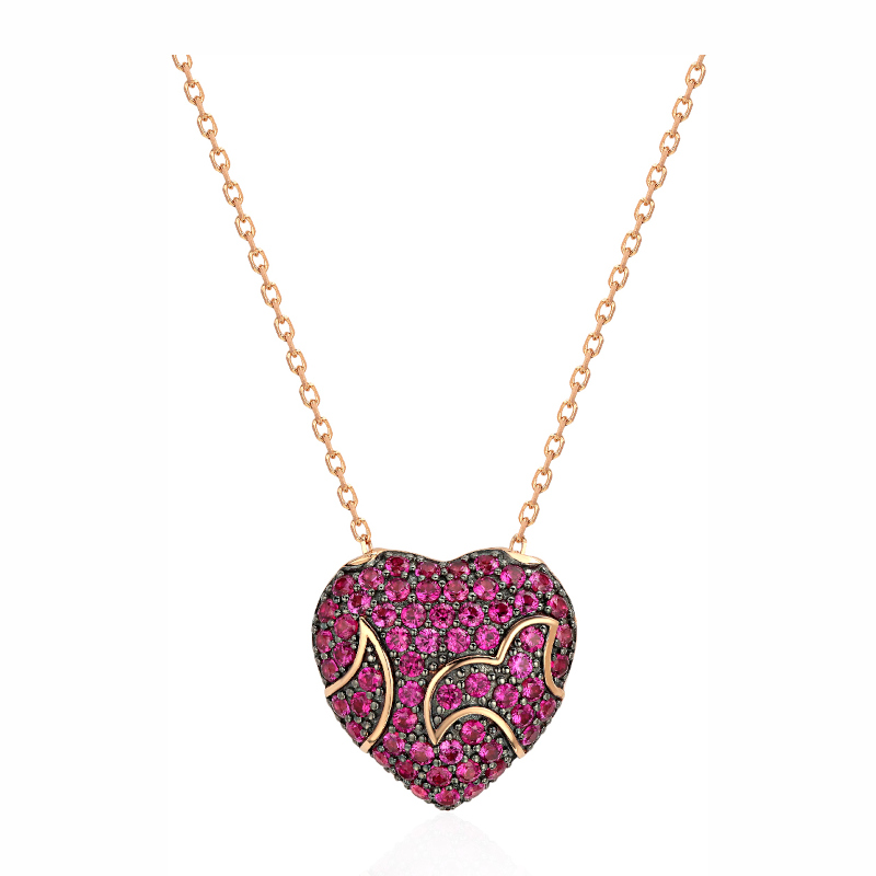 Колье "Сердце" из желтого золота 585 пробы с фианитами и корундом 01Л232286ЧР-1