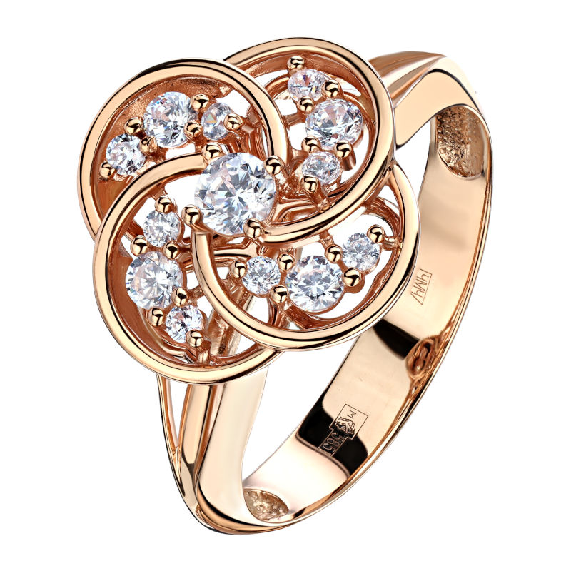 Кольцо из красного золота 585 пробы с фианитами 01К1113810