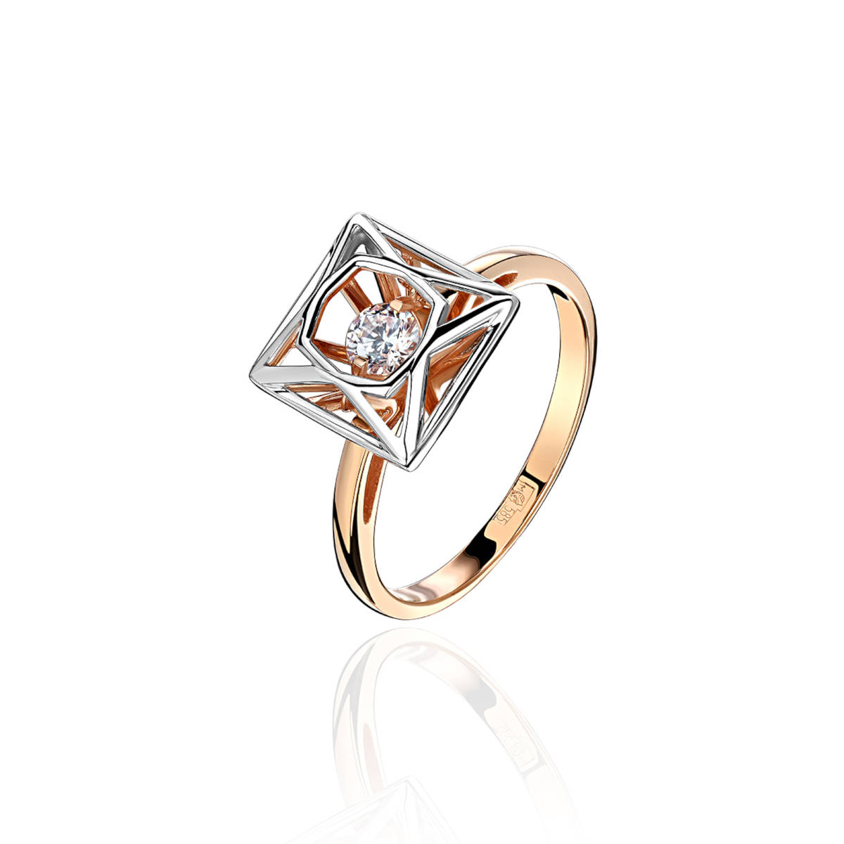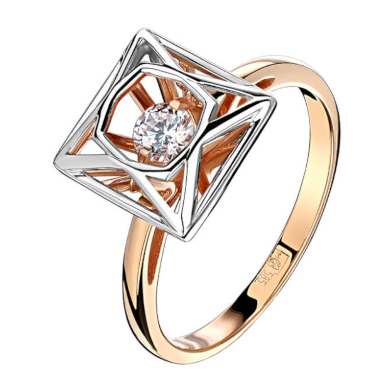 Кольцо из красного золота 585 пробы с фианитом 01К117954