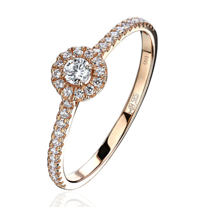 Это помолвочное кольцо из красного золота 585 пробы, украшенное бриллиантами, которые подчеркивают его изысканность и элегантность. Кольцо выполнено с вниманием к деталям, каждое настоящее бриллиантовое украшение создано для того, чтобы подчеркнуть особенность момента и символизировать любовь и преданность. Благодаря качественным материалам и безупречной работе мастеров, изделие отличается долговечностью и стойкостью, сохраняя свой первоначальный блеск на долгие годы.