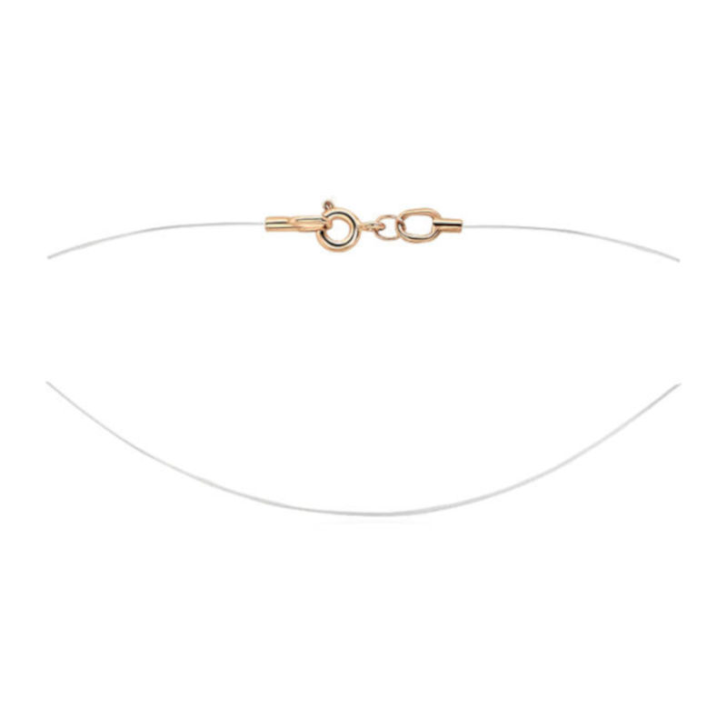 Необычное украшение – колье на силиконовой леске-невидимке с замком из красного золота 585 пробы без вставок. Колье база для Ваших подвесок. Визуальное впечатление отсутствия цепочки придает особую легкость и нежность Вашему образу. В украшении много воздуха, свободы. Аксессуар подчеркнет одну из самых притягательных частей - женскую ключицу и плечи.