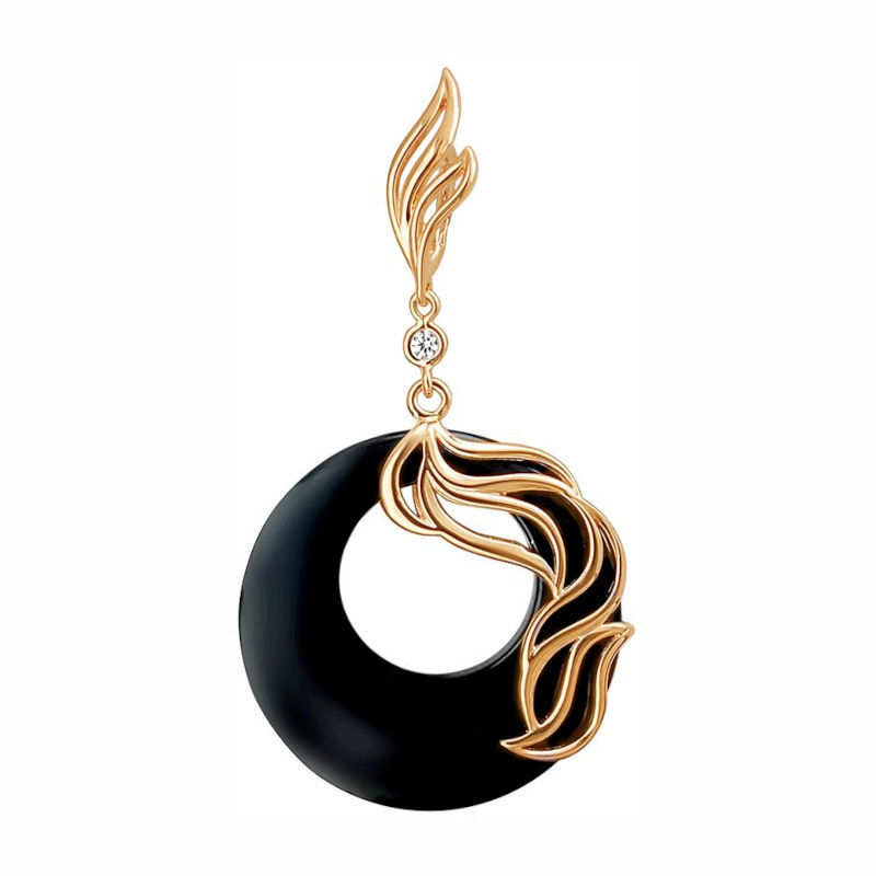 Элегантная подвеска из серебра 925 пробы 01П4510122А-1 состоит из крупного кольца из черного агата, диаметром 25 мм. Верхняя часть кулона украшена нежным фианитом, добавляя мерцания и изящности всему изделию. Позолота из красного золота подчеркивает богатство оттенков и создает теплую и насыщенную гамму, делая украшение универсальным дополнением к самым различным образам.