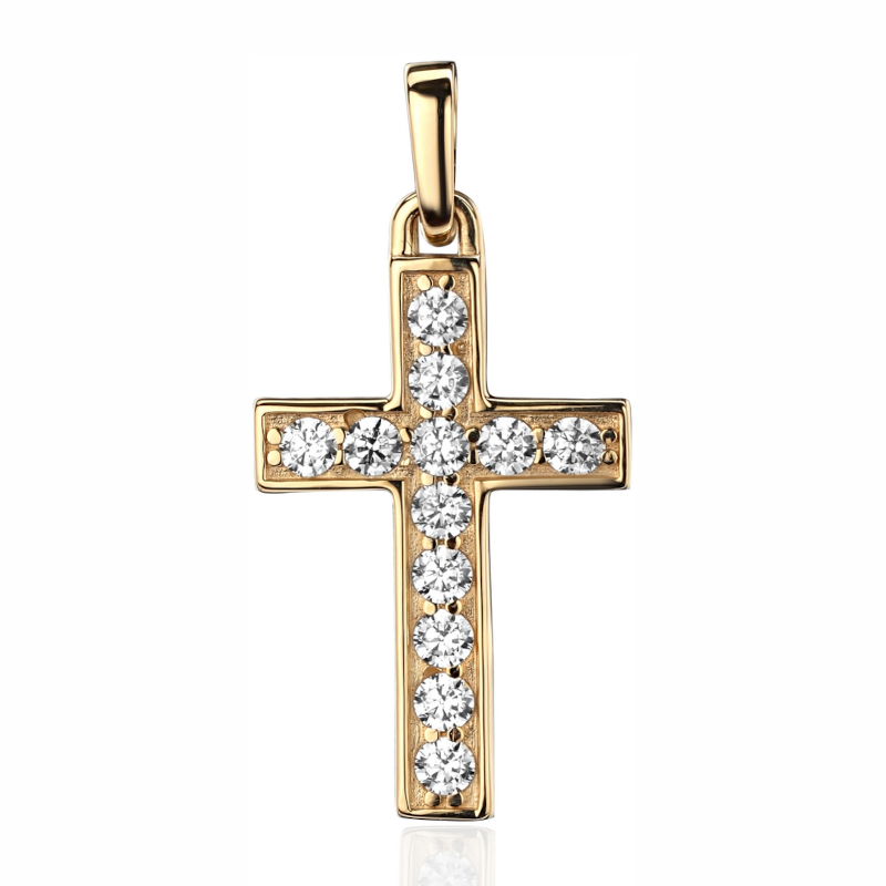 Крест из желтого золота 585 пробы с фианитами 01Р131129 из коллекции Религия станет изысканным акцентом для любого образа.