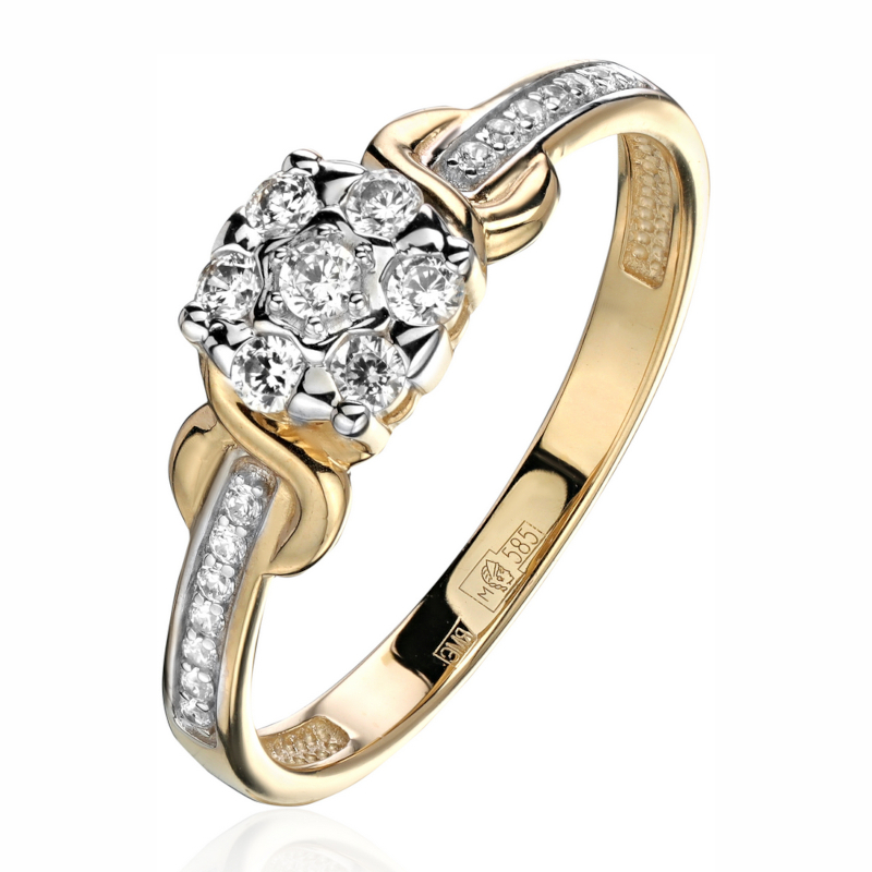 Кольцо из желтого золота 585 пробы c фианитами 01К1314539Р