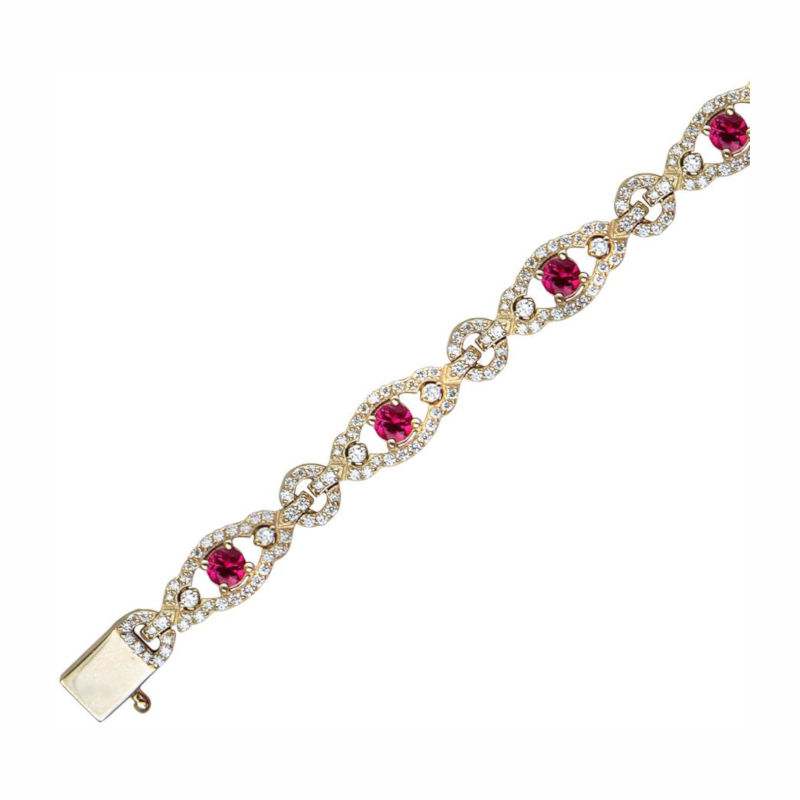 Браслет из желтого золота 585 пробы с рубинами и бриллиантами 01Б631520-1