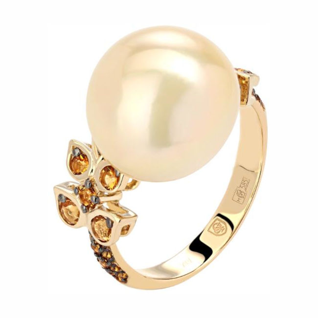 Кольцо из желтого золота 585 пробы с жемчугом и цитринами 01К3311218-1