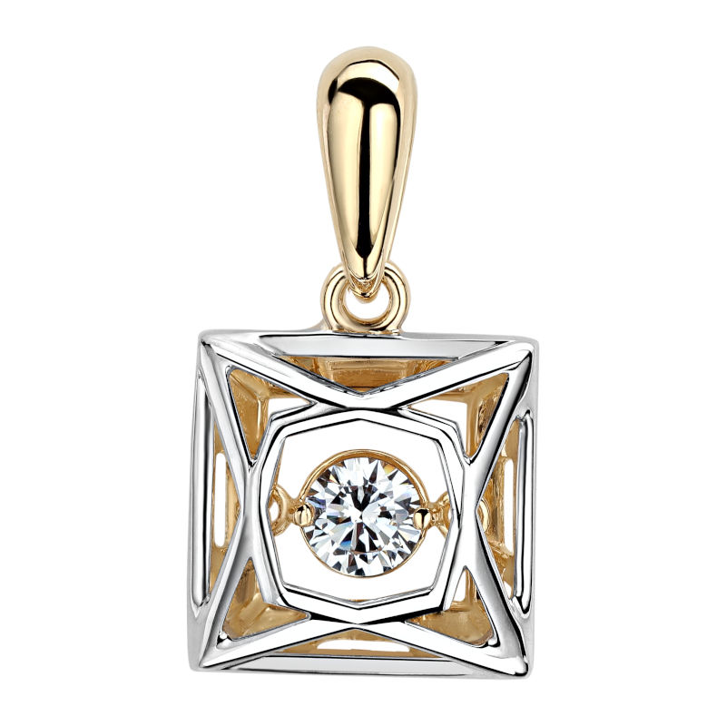 Подвеска из желтого золота 585 пробы с танцующим фианитом из коллекции Impulse Gold.  Уникальная закрепка раскрывает всю красоту украшений. Точно выверенный баланс создан с таким расчетом, чтобы изделие следовало за любыми движениями Вашего тела. Покачиваясь, камень превращает световые лучи в завораживающие радужные вспышки огня. Это истинное волшебство, которого достойна настоящая Женщина!