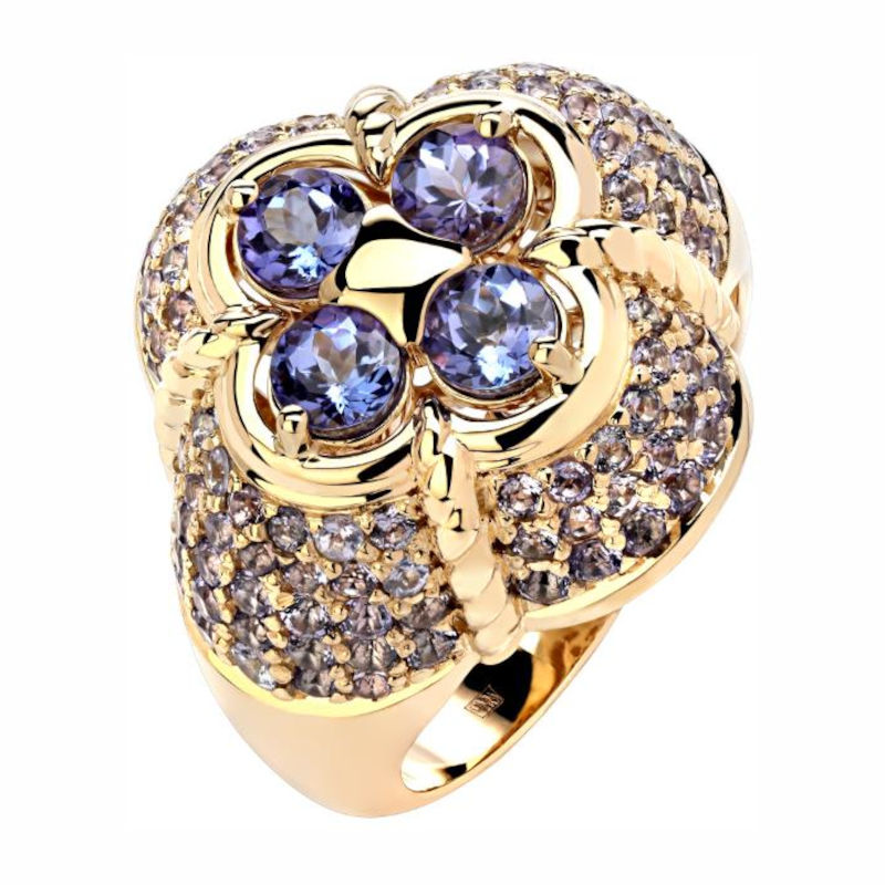 Кольцо из желтого золота 585 пробы с танзанитами 01К3313307-1
