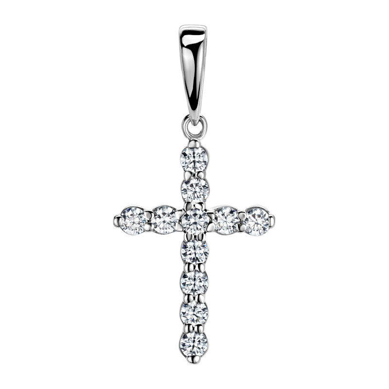 Крест из белого золота 585 пробы с фианитами 01Р120890