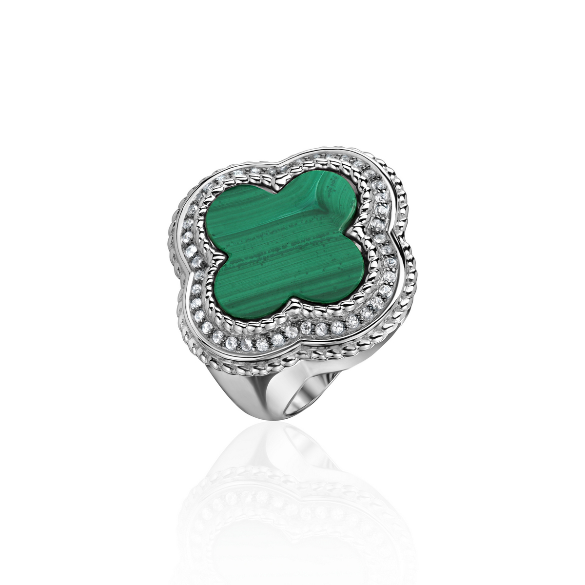 Кольцо из белого золота 585 пробы с сапфирами и малахитом 01К5213314-1