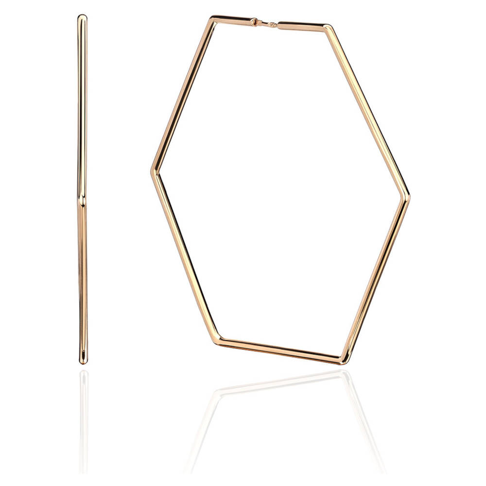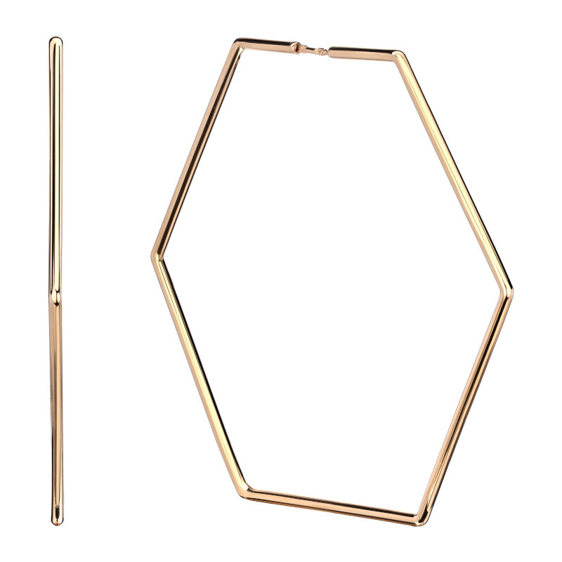 Серьги конго из красного золота 585 пробы без вставок из коллекции "Геометрия". Такие серьги изготавливаются полыми, что делает их очень легкими при внушительном размере. Классическую круглую форму конго заменили углы геометрии.