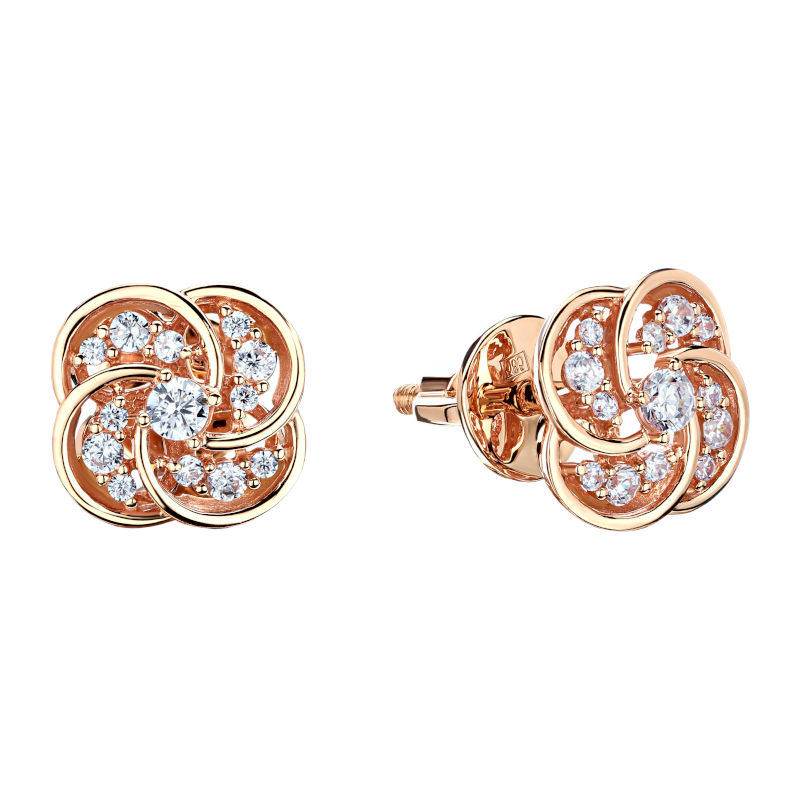 Серьги пусеты из красного золота 585 пробы с фианитами 01С1114910
