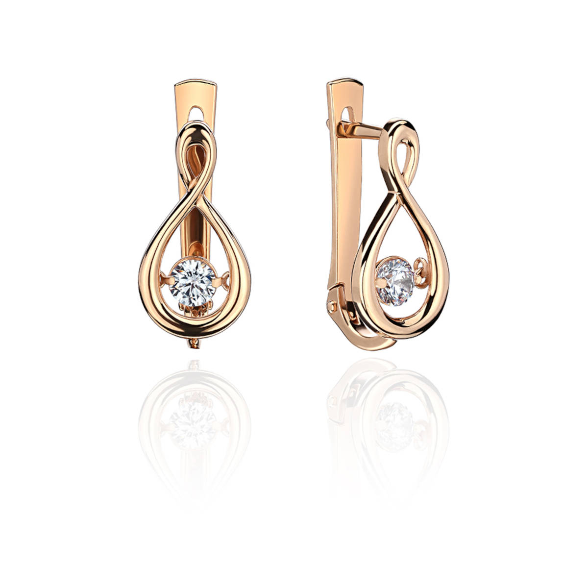 Серьги из красного золота 585 пробы с танцующими фианитами из коллекции Impulse. Уникальная закрепка в украшениях Impulse, пожалуй, прорыв во множестве традиционных вариантов закрепки камней. Точно выверенный баланс создан с таким расчетом, чтобы вставка приходила в движение, не переворачиваясь. Качания камня визуально ассоциируются с танцем. Лучи света каждый раз отражаются от разных граней вставки, превращаясь в радужные вспышки света. Это волшебство отражает всю красоту женщины.