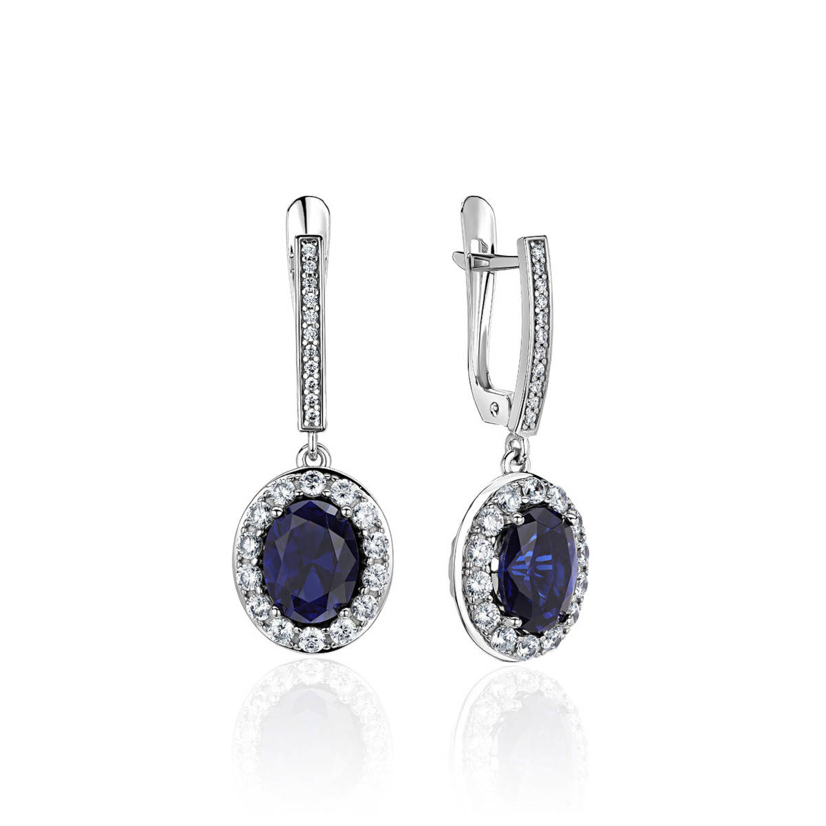 Серьги из белого золота 585 пробы с наносапфирами и фианитами 01С2214943-1