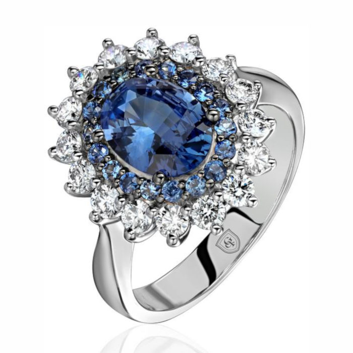 Кольцо из белого золота 585 пробы с бриллиантами и сапфирами 01К6212075-1