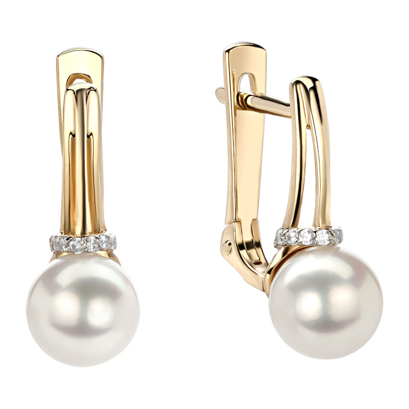 Серьги из желтого золота 585 пробы с жемчугом и фианитами 01С3312956-1