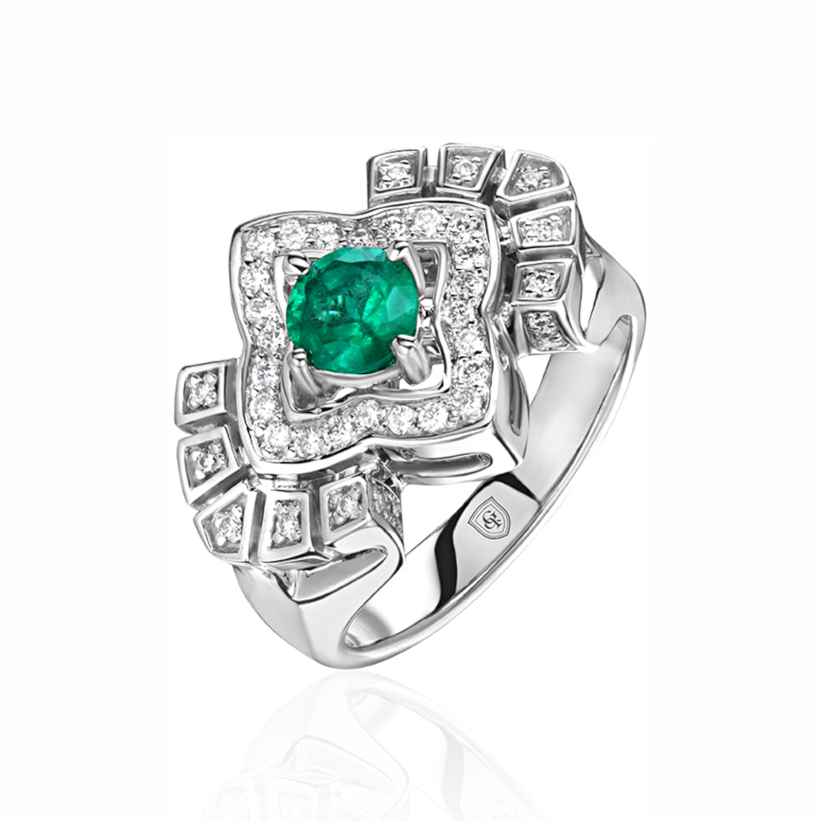Кольцо из белого золота 585 пробы с изумрудом и бриллиантами 01К6212948-1