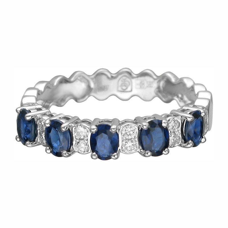 Кольцо из белого золота 585 пробы с бриллиантами и сапфирами 01К6213043-1