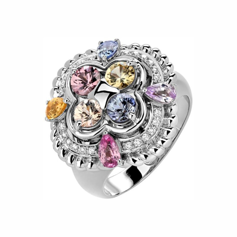 Кольцо из белого золота 585 пробы с сапфирами и бриллиантами 01К6214409-6