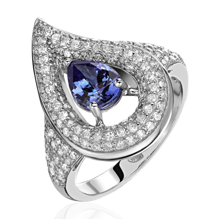 Кольцо из белого золота 585 пробы с танзанитом и бриллиантами 01К6214485-1