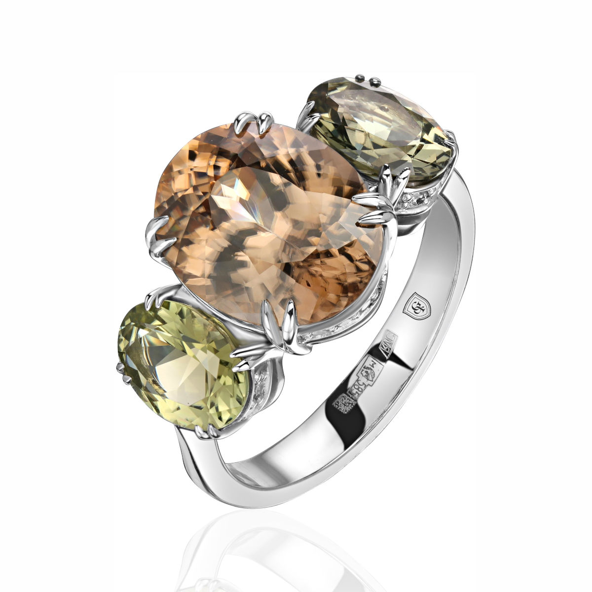 Кольцо из белого золота 585 пробы с турмалинами, гиацинтом и бриллиантами 01К6214853-1