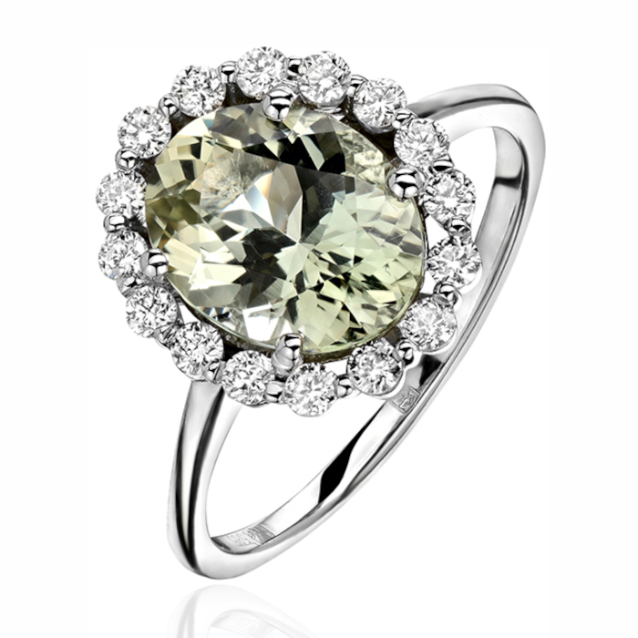 Кольцо из белого золота 585 пробы с турмалином и бриллиантами 01К625922-13