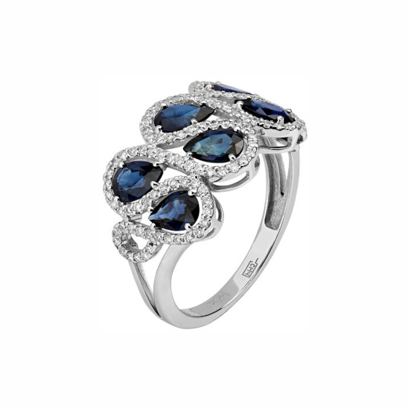 Кольцо из белого золота 585 пробы с сапфирами и бриллиантами 01К627033-1