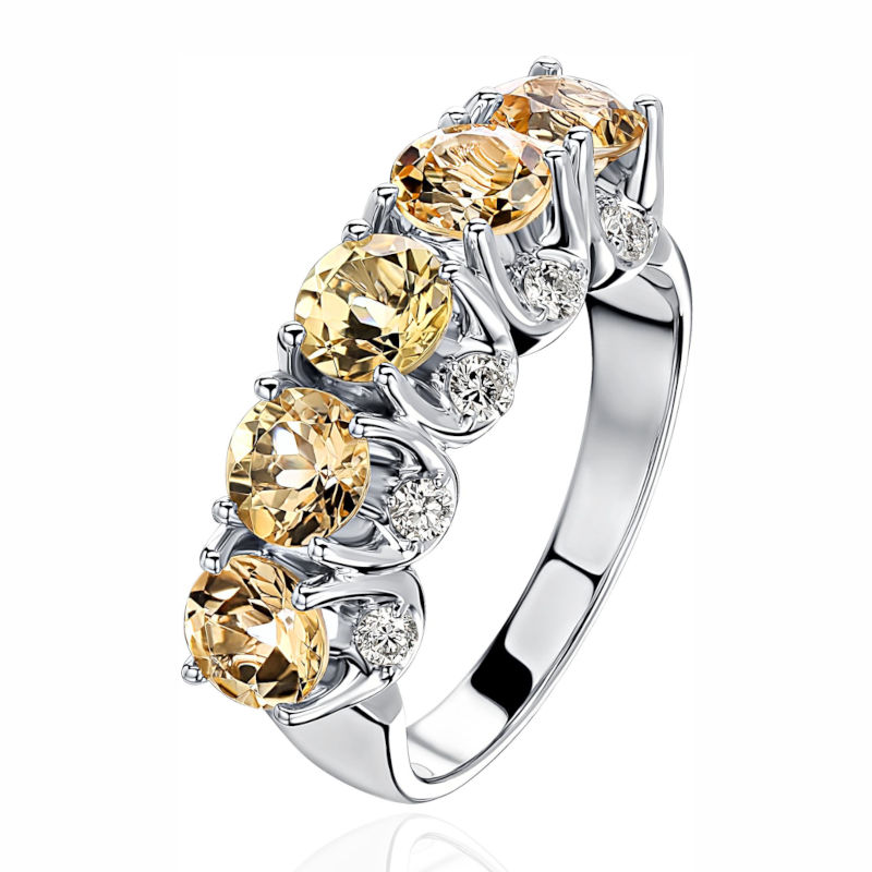 Кольцо из белого золота 585 пробы с гелиодорами и бриллиантами 01К627995-18