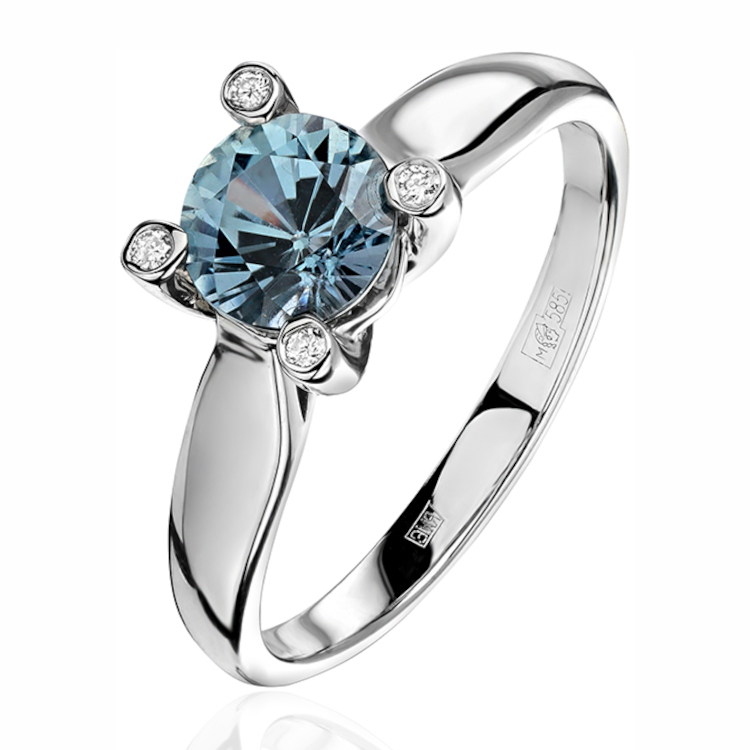 Кольцо из белого золота 750 пробы с сапфиром и бриллиантами 01К628810-6
