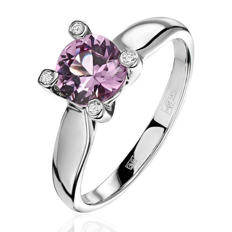 Кольцо из белого золота 585 пробы с сапфиром и бриллиантами 01К628920-8