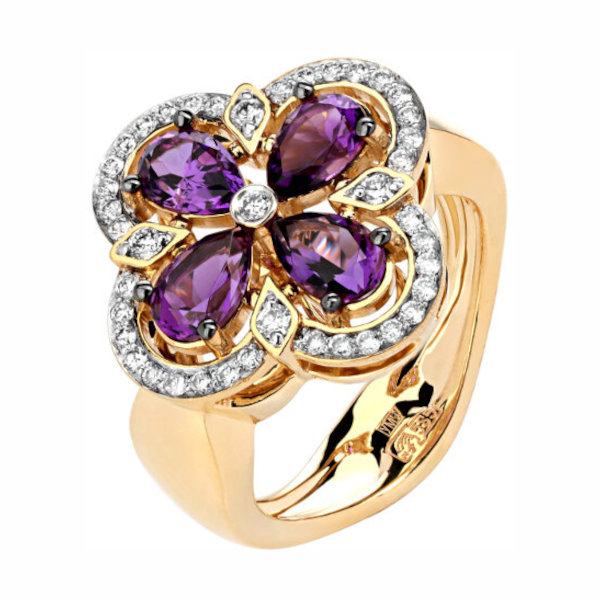 Кольцо из желтого золота 585 пробы с аметистами и бриллиантами 01К6312019-4