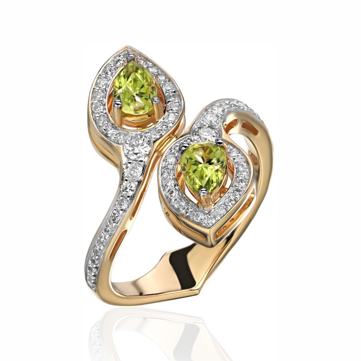 Кольцо из желтого золота 585 пробы с хризолитами и бриллиантами 01К6312692-7