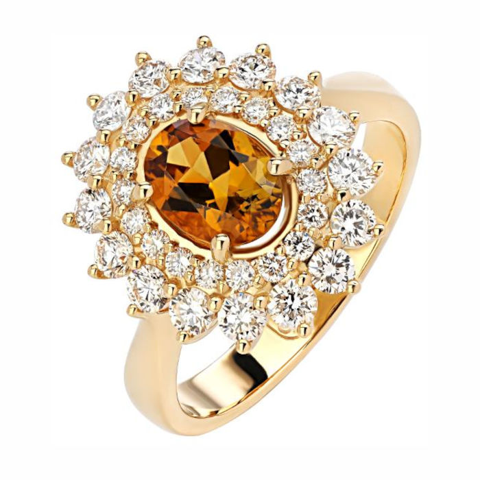 Кольцо из желтого золота 585 пробы с турмалином и бриллиантами 01К6312075-10