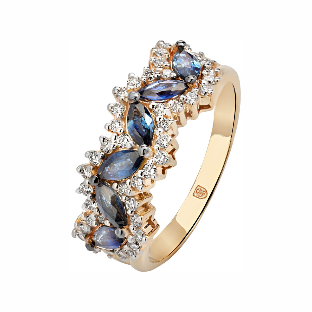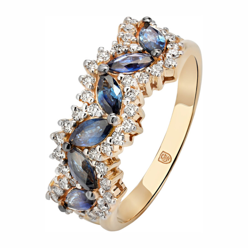 Кольцо из желтого золота 585 пробы с сапфирами и бриллиантами 01К6314317-2