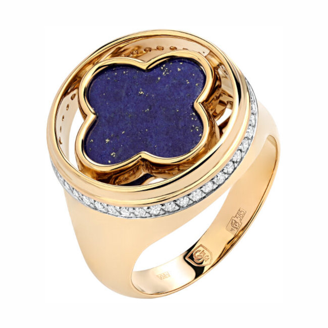 Кольцо из желтого золота 585 пробы с лазуритом и бриллиантами 01К6313305-2